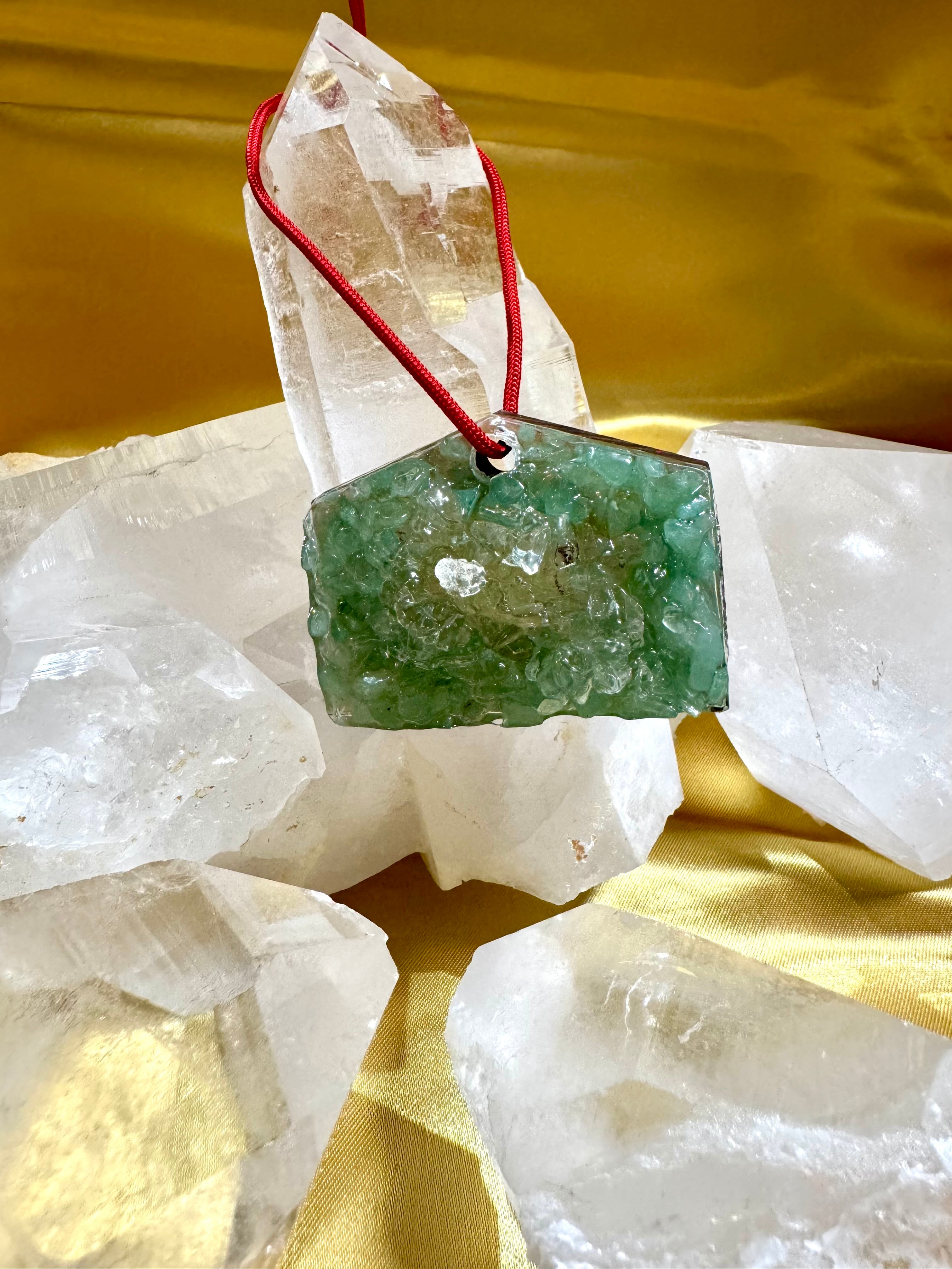 2種類の天然石サザレを綿密に並びあげ、グリーンアベンチュリンがあなた様の心を優しく癒し、水晶が願いのエネルギーを増幅させることで、あらゆる願いを現実に結びつける強い力を秘めています。