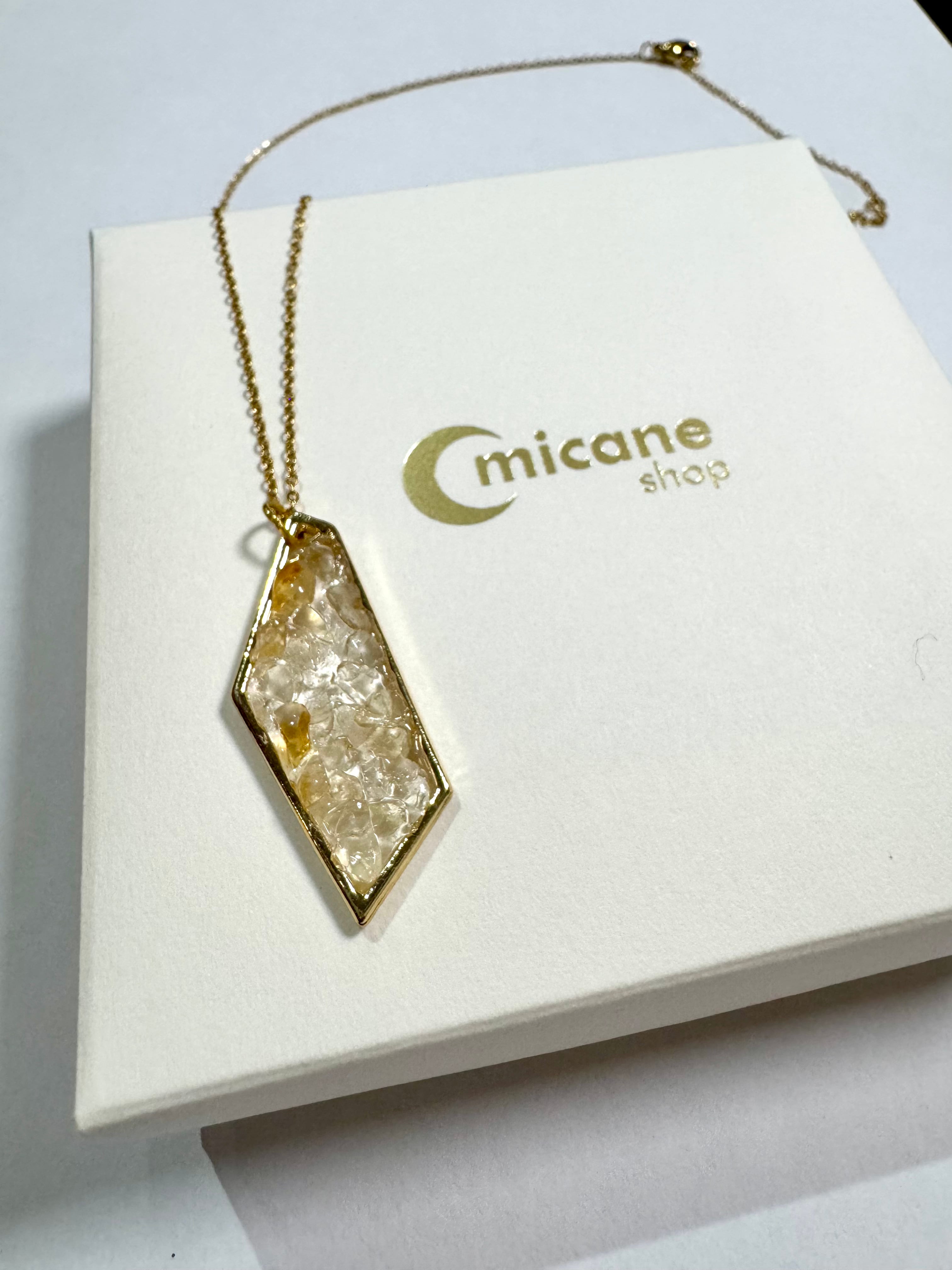シトリンのさざれ石とゴールドチャームで仕立てた「呼び富(よびとみ)のタリスマンネックレス」です。