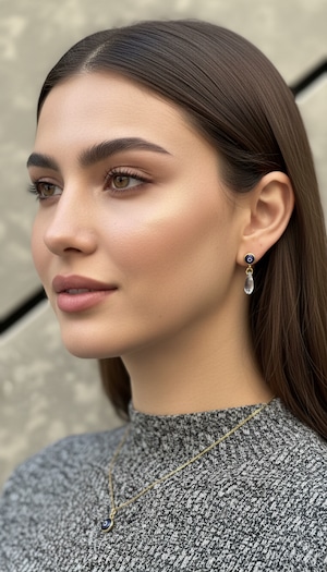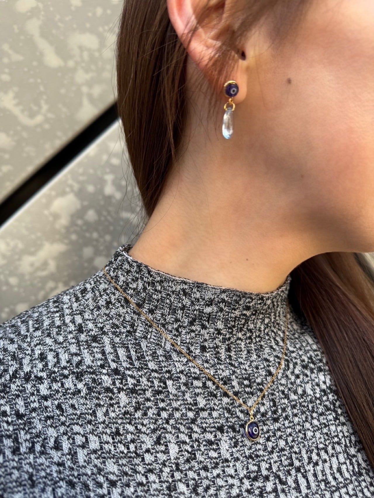 またモデル女性がピアスと同時に着用している同シリーズのナザールボンジュウネックレス【Evil Eye Protection Talisman/トルコ産】も是非ご覧頂けばと思います。