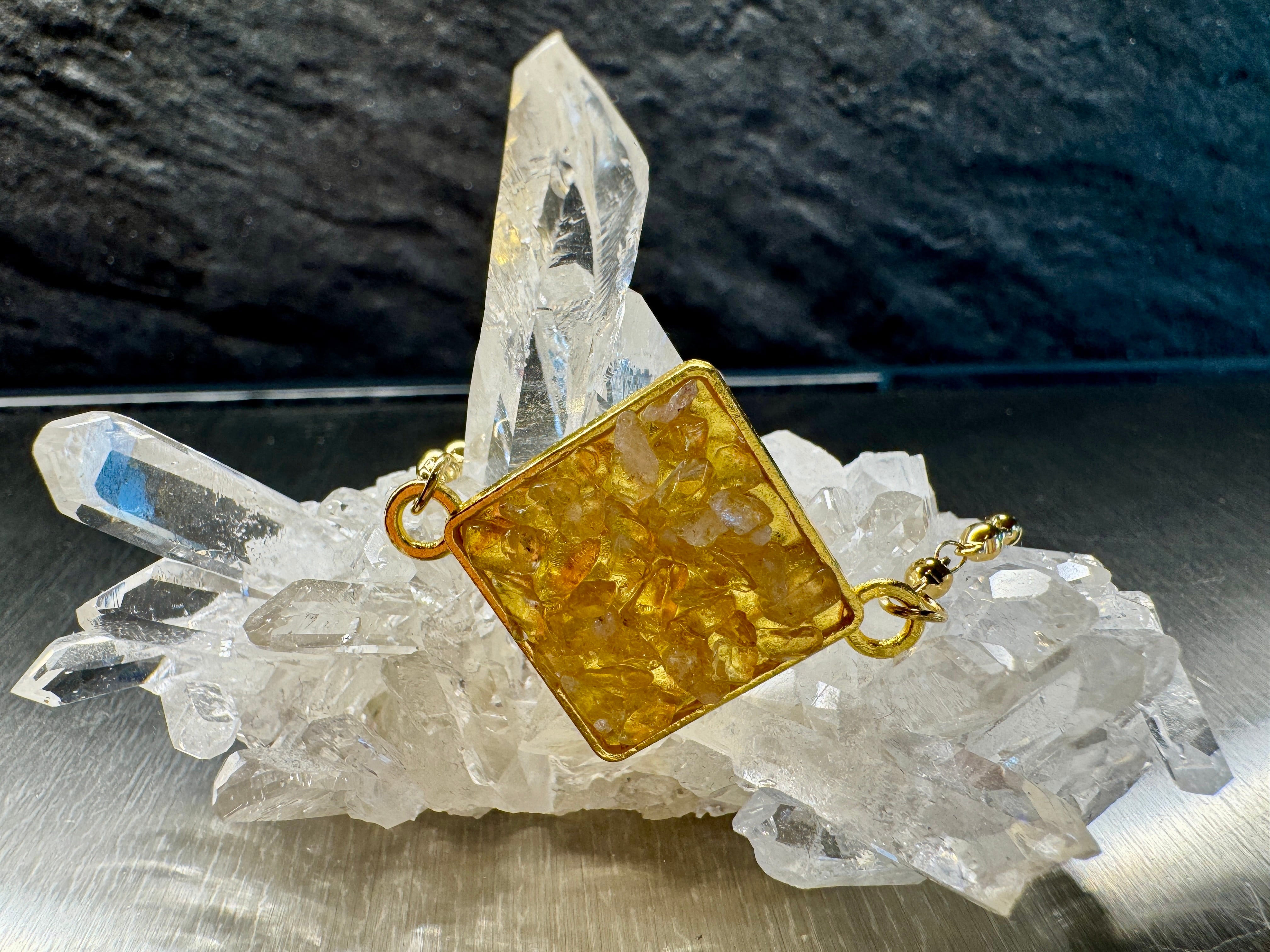 ※1つ1つ手作りで作成しれおりますので、シトリンチャームの色合いや雰囲気は写真と若干違いが出る場合がございます。また商品の性質上、シトリンチャームは繊細な商品となりますので、シトリンチャーム部分に強い圧力などをかけると、さざれが落ちてしまう事などがありますのでご了承下さいませ。