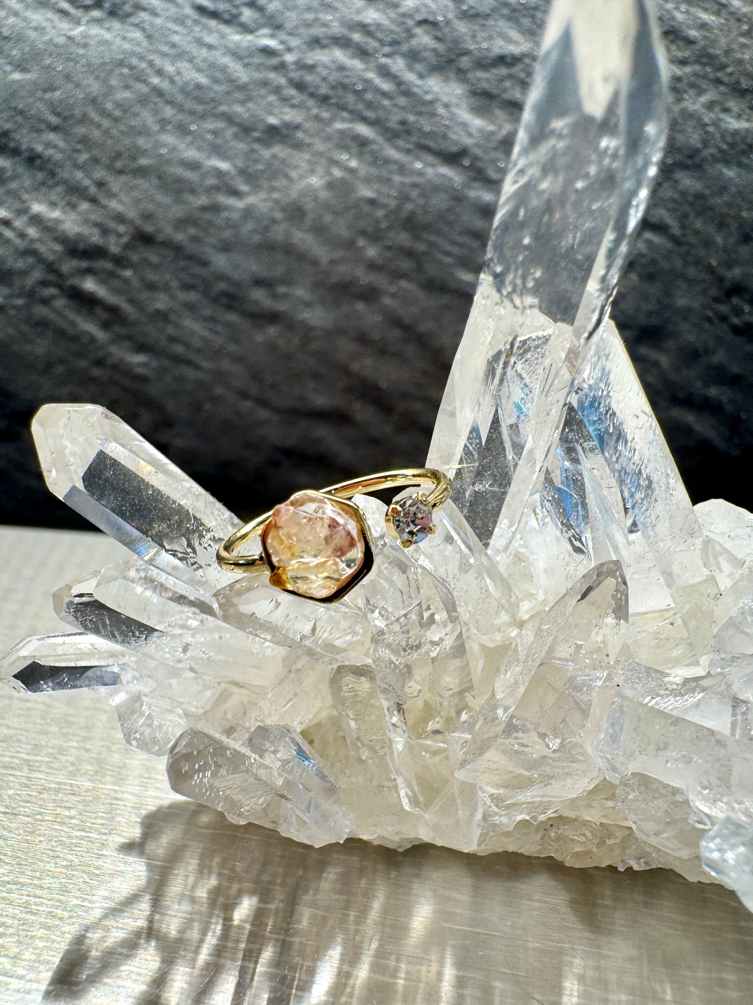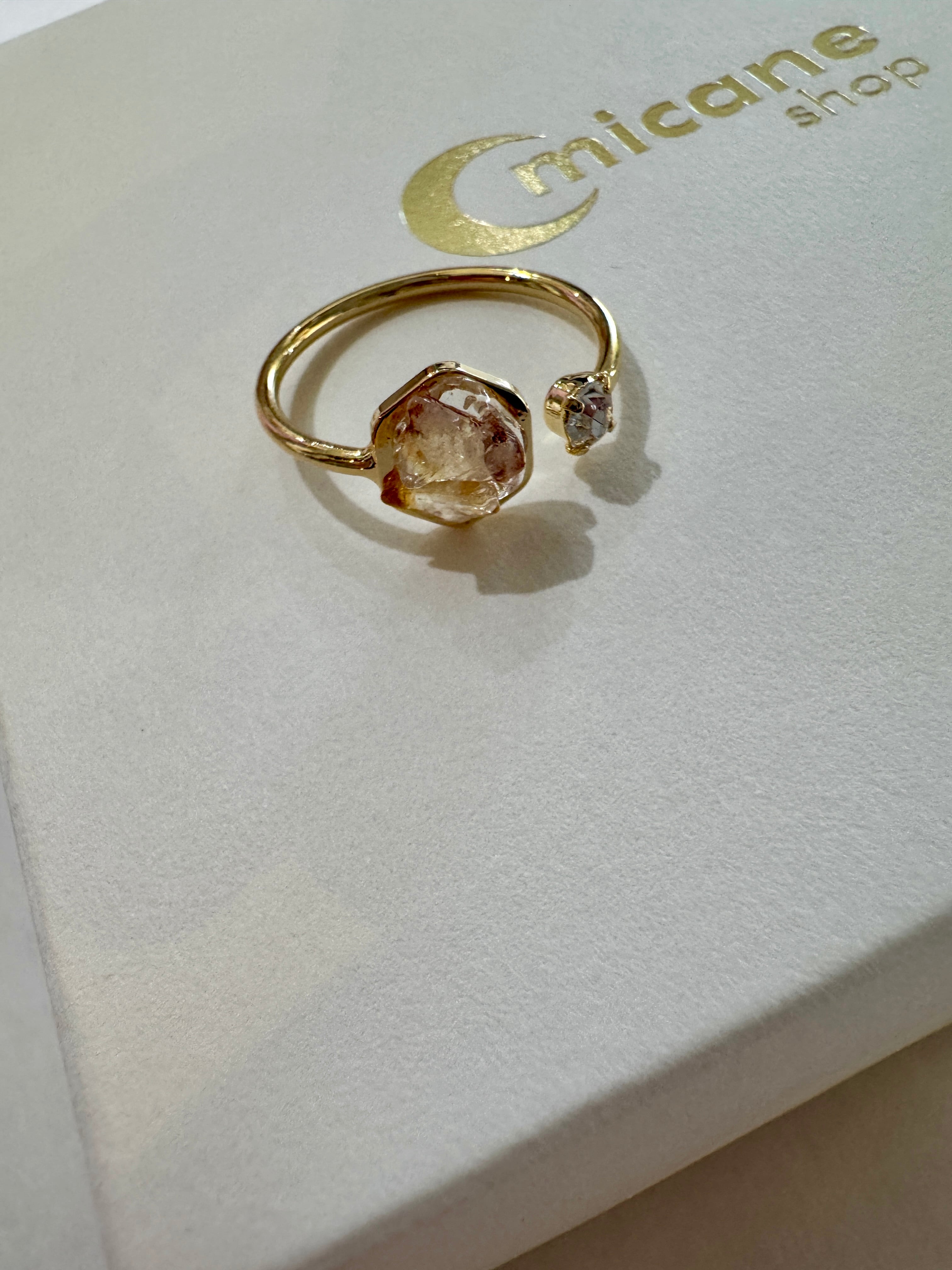 シトリンのさざれ石とゴールドチャームで仕立てた「呼び富(よびとみ)のタリスマンリング」です。