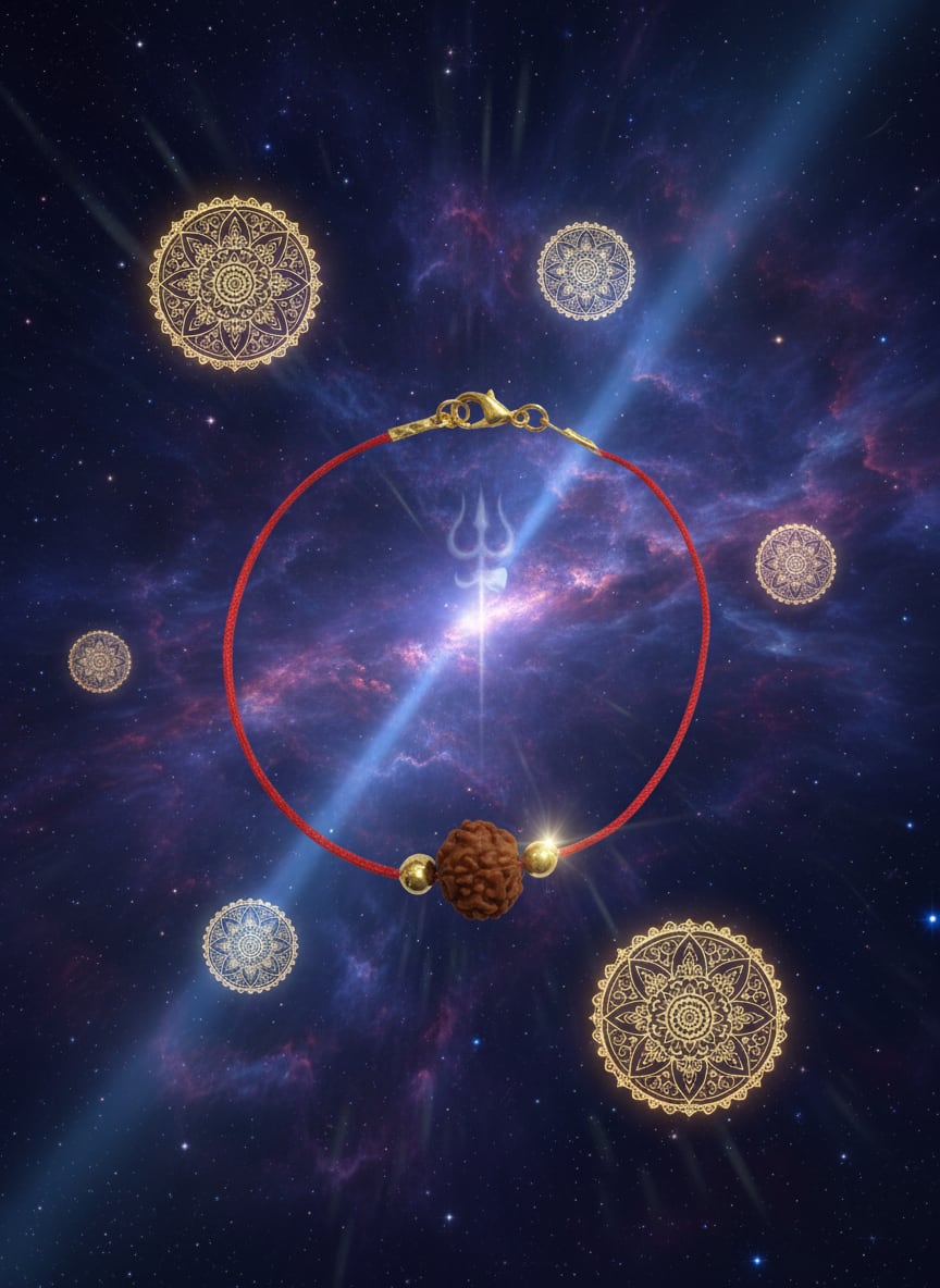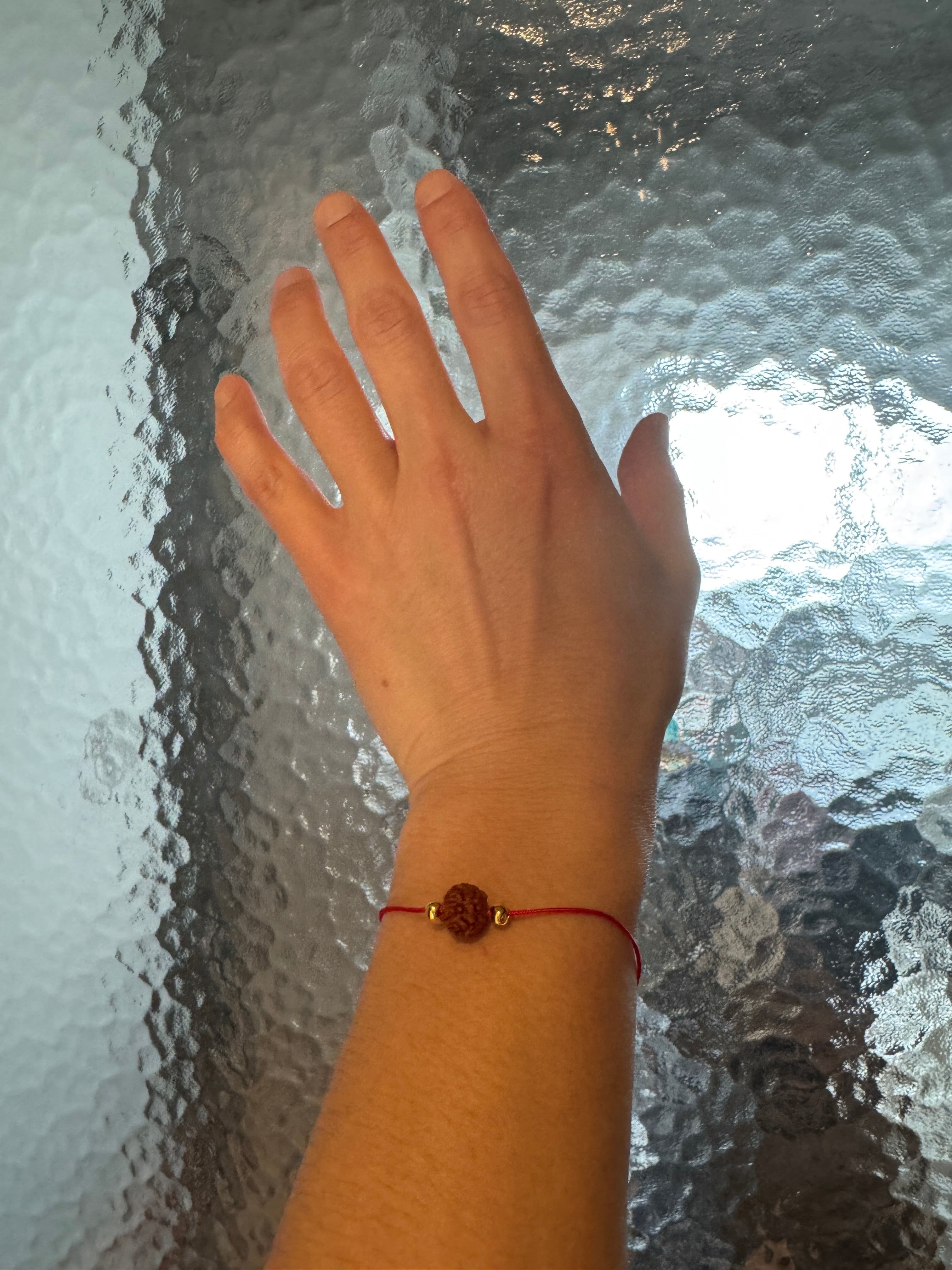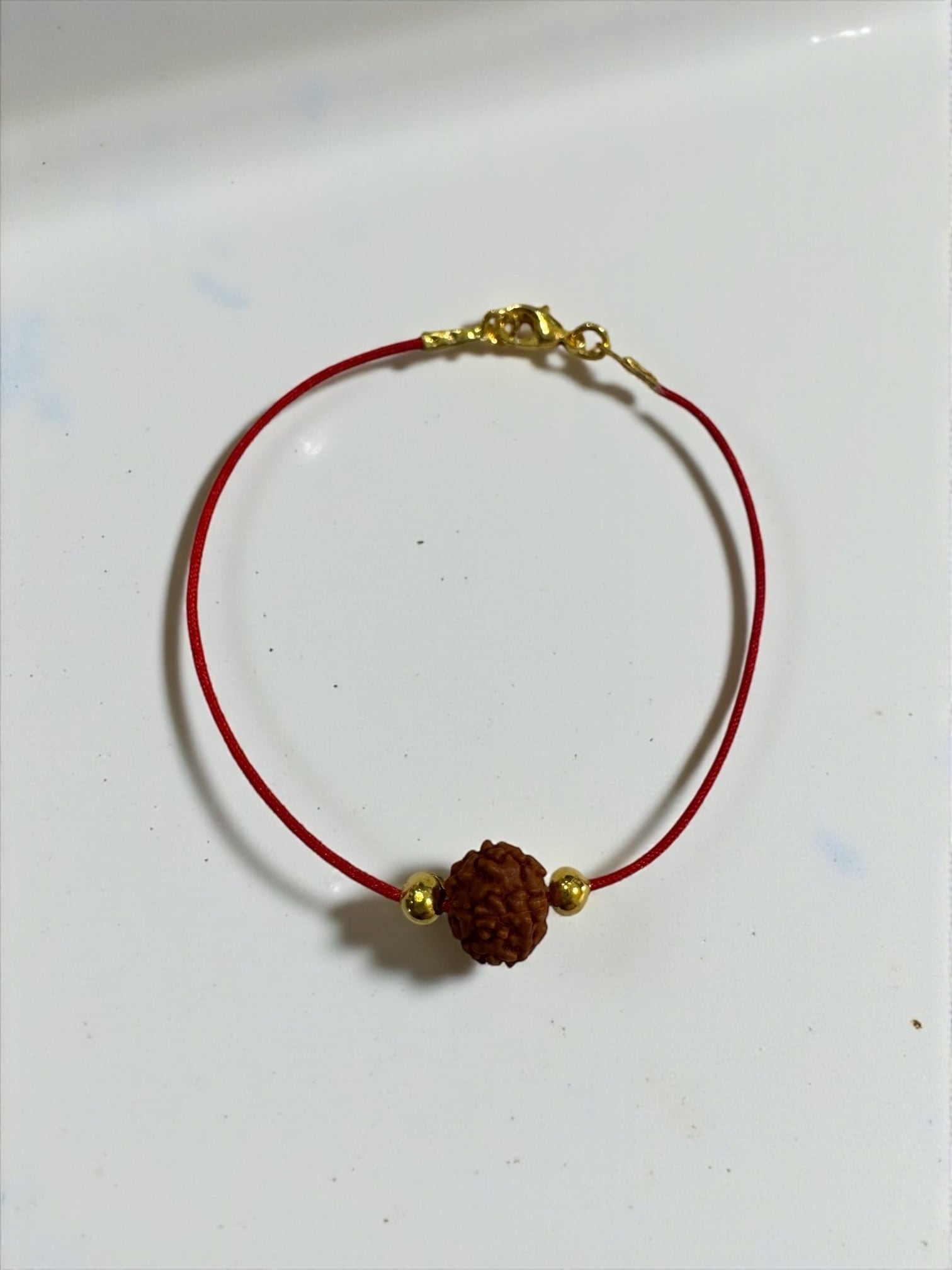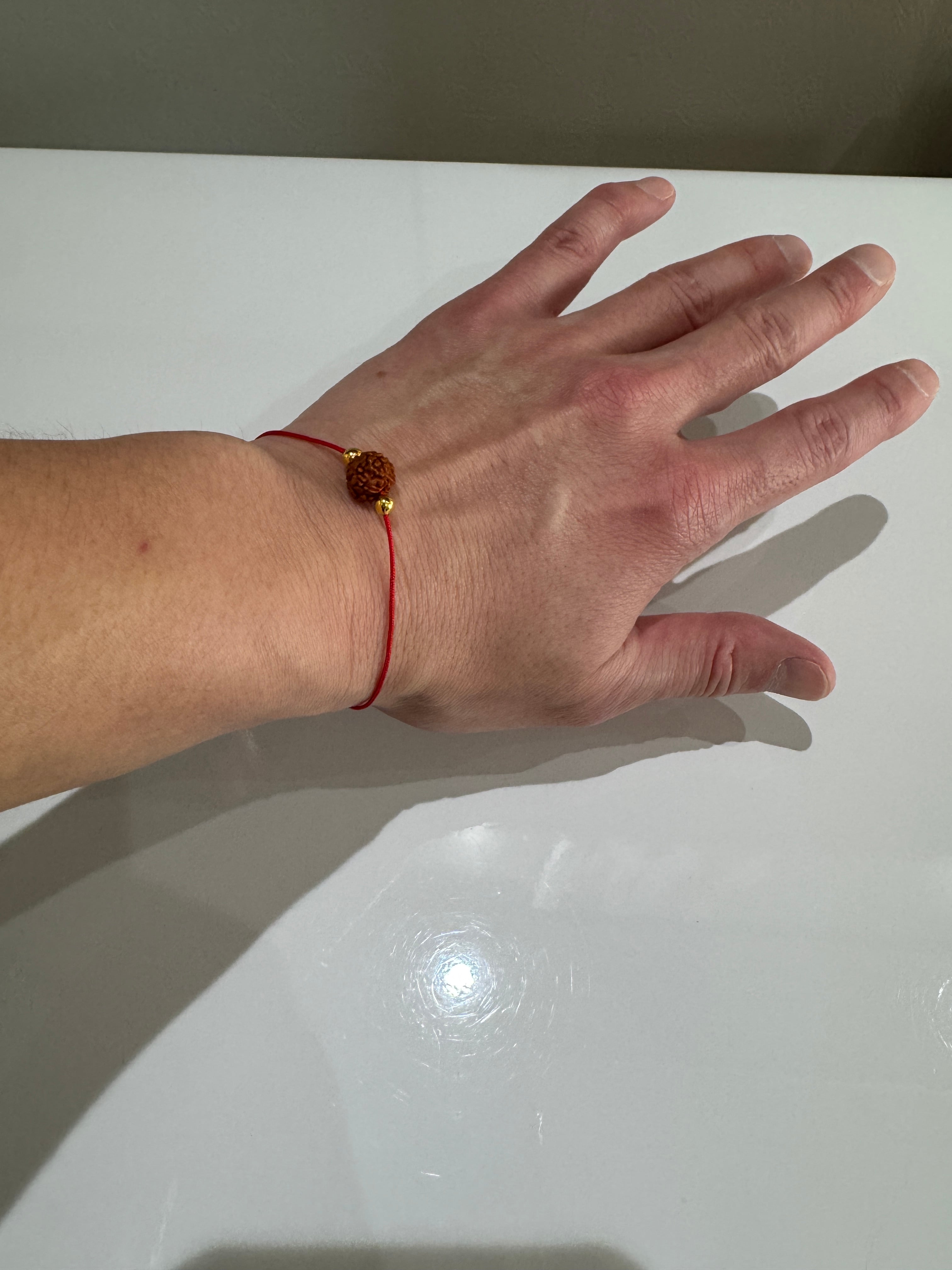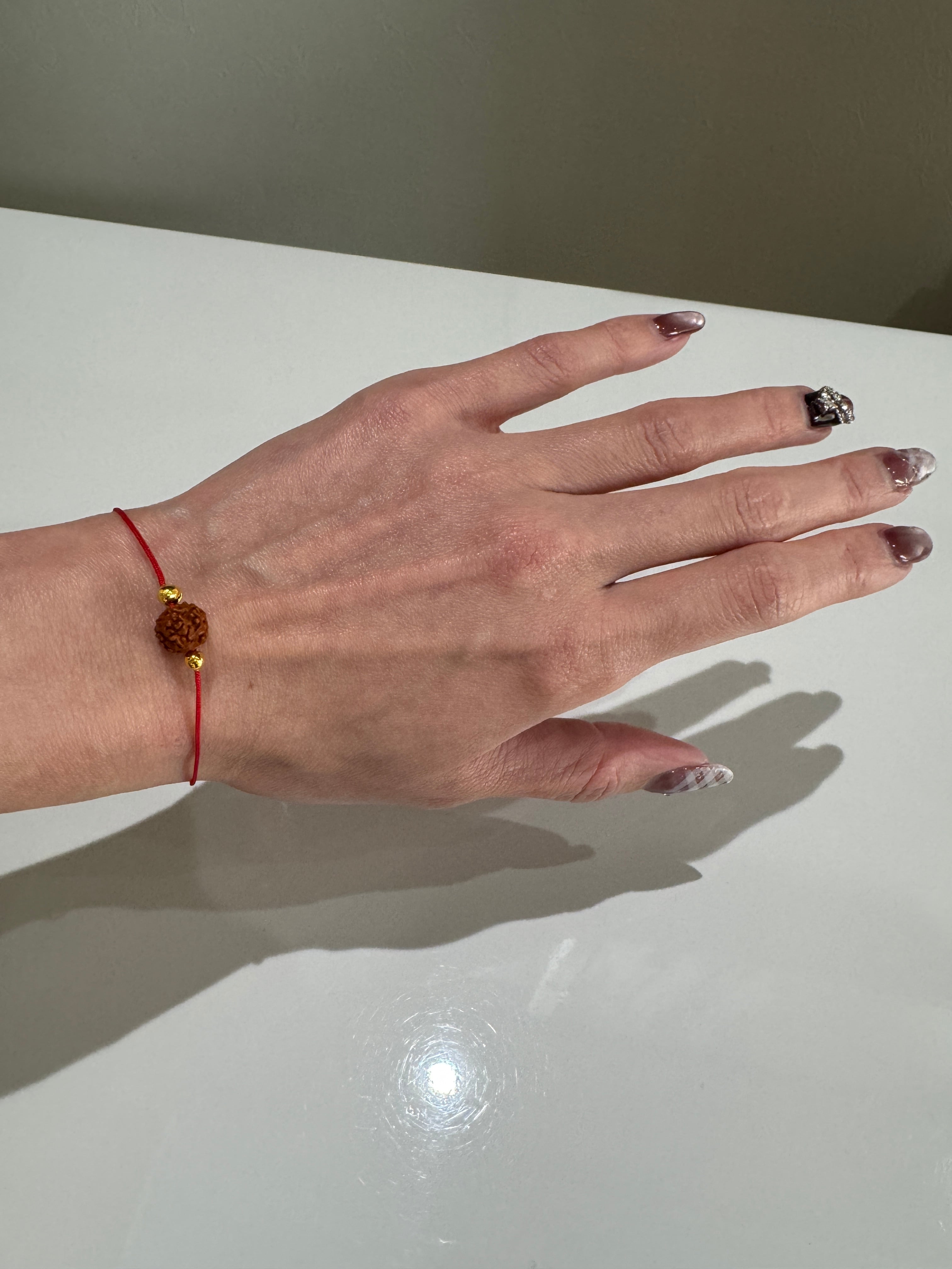 ルドラクシャブレスレット(Rudraksha Bracelet)【5ムキ認定書〈守護の赤糸×金の繁栄〉】