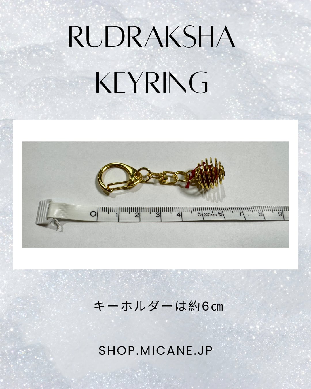 ルドラクシャキーホルダー(Rudraksha keyring)【5ムキ認定書〈守護の赤糸×金の繁栄〉】