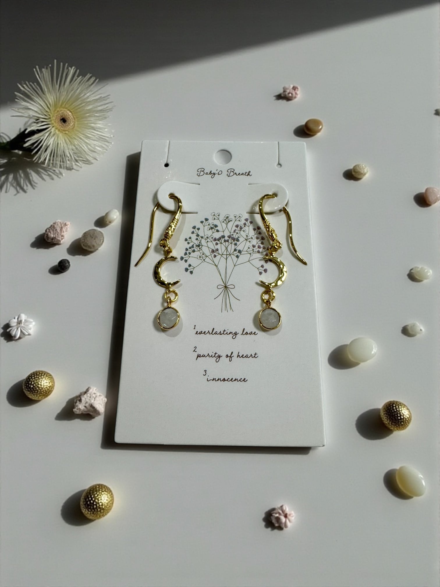 ・素材:18k ゴールドロジウムメッキ・銅・ジルコン・ムーンストーンチャーム