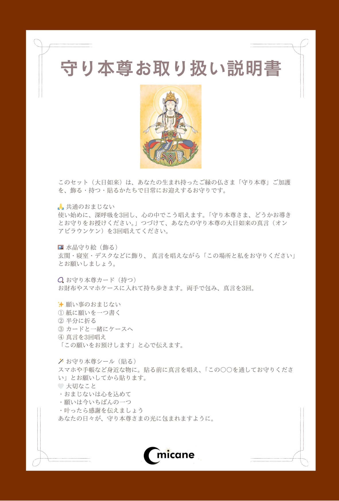 守り本尊 大日如来セット【水晶守り絵・お守り本尊カード・お守り本尊シール】子年・丑年・11月・12月生まれ