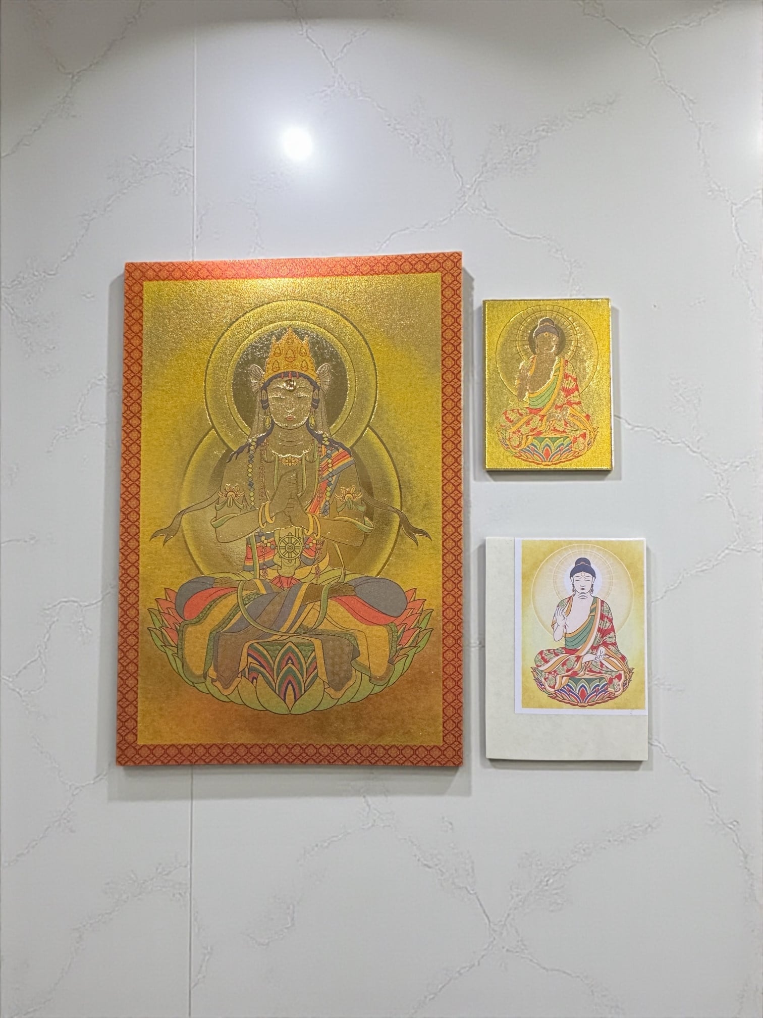 ご自身やご家族それぞれの守り本尊の水晶守り絵を、玄関やリビングに並べて飾ることで、