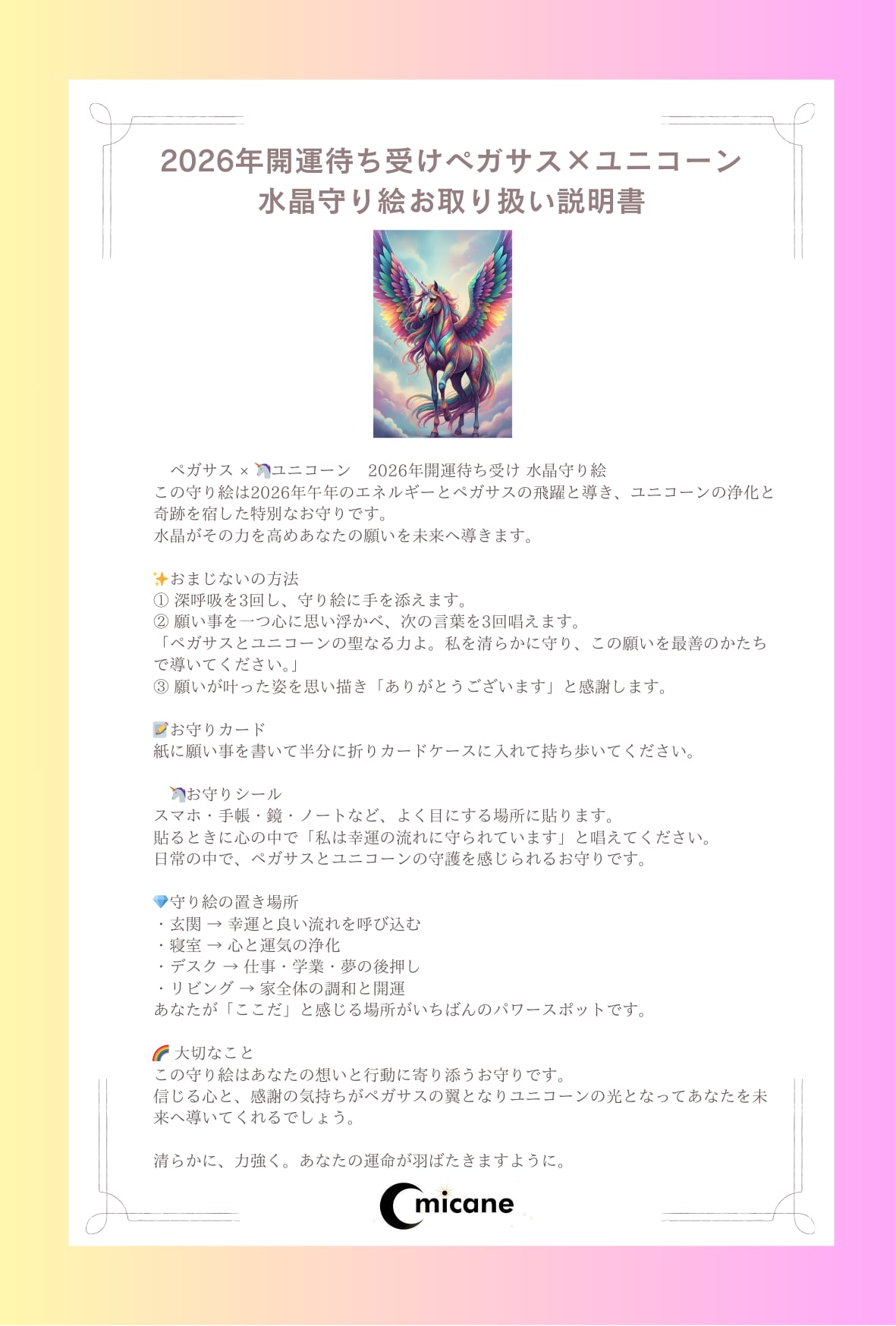 2026年開運待ち受け ペガサス×ユニコーン 水晶守り絵セット【飛躍・浄化・奇跡・願望成就】