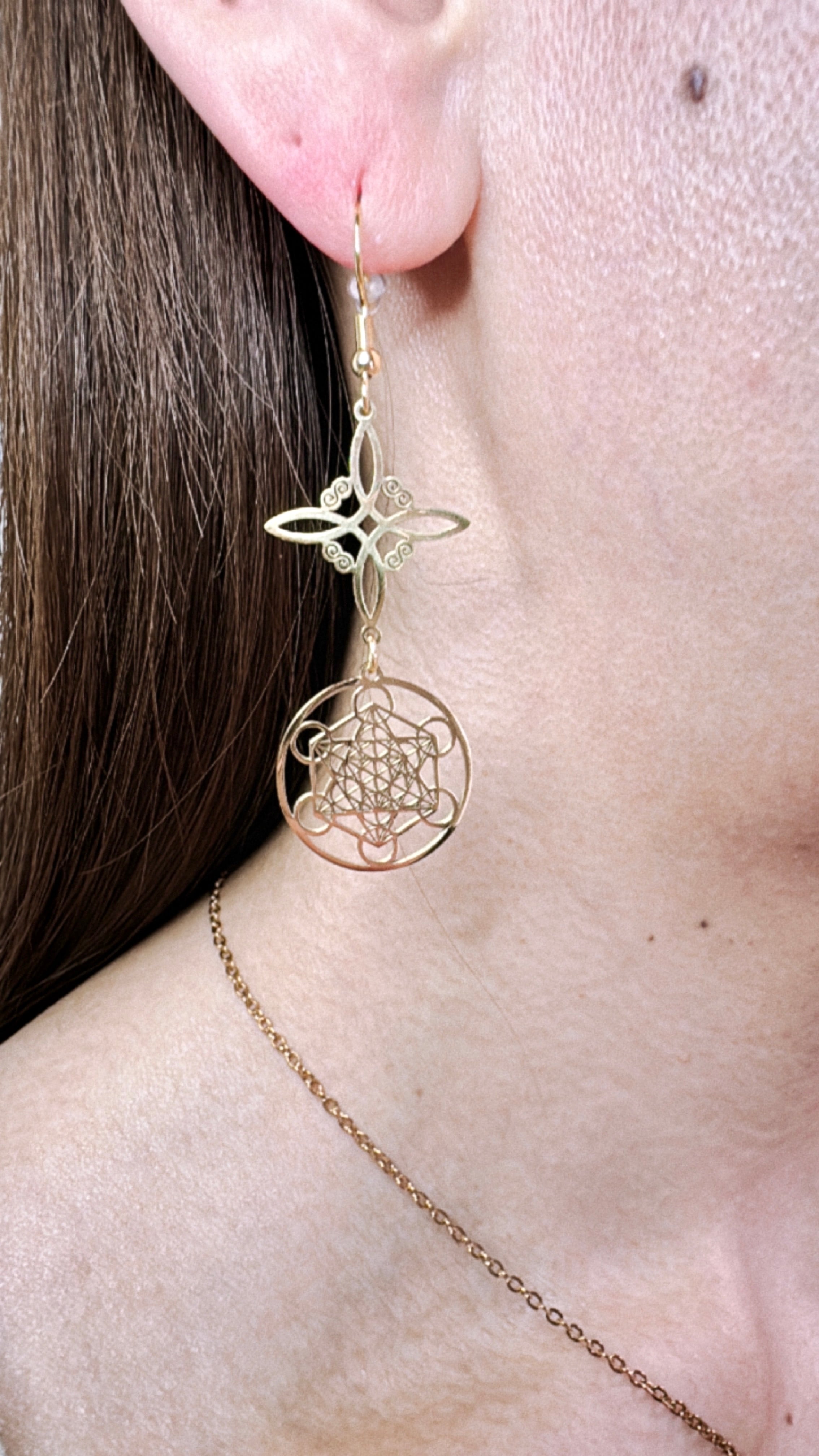 神聖幾何学メタトロンキューブをモチーフにしたピアス。
