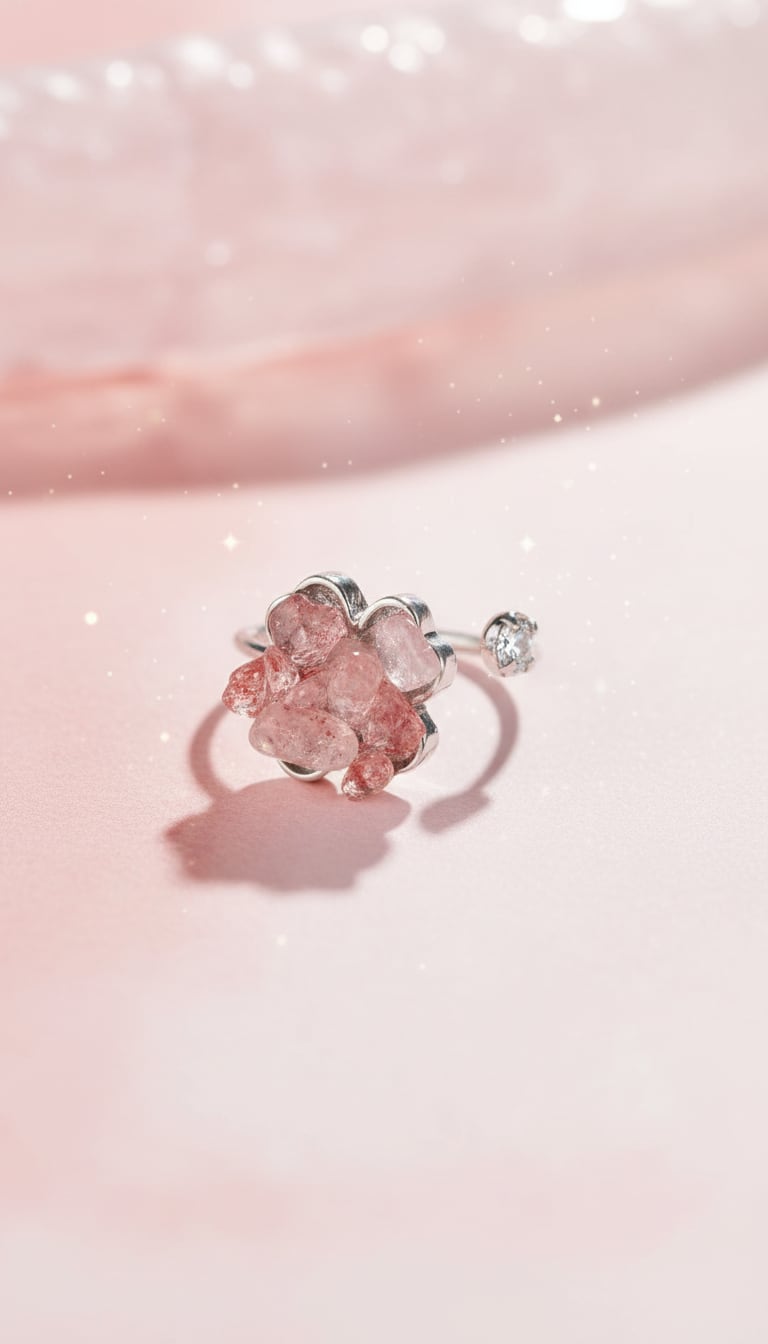 「愛と幸運が重なる場所」をテーマに生まれた四葉のクローバー × ストロベリーローズクォーツの恋愛運タリスマンリング。