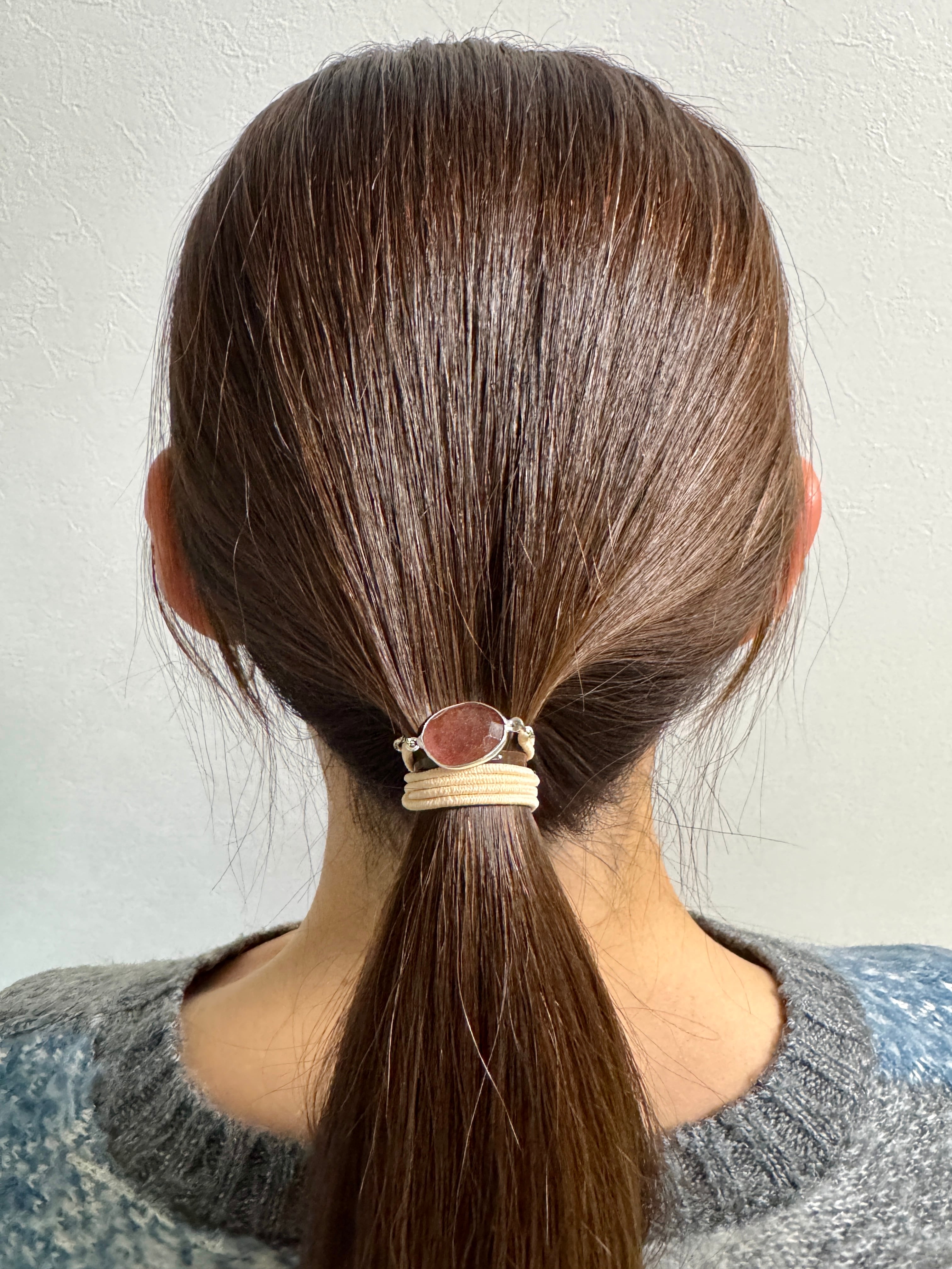 ・商品を長くお使いいただく為に、髪を結ぶ際は一度別のヘアゴムで結び、その上から当商品を重ね付けする方法を推奨致します。