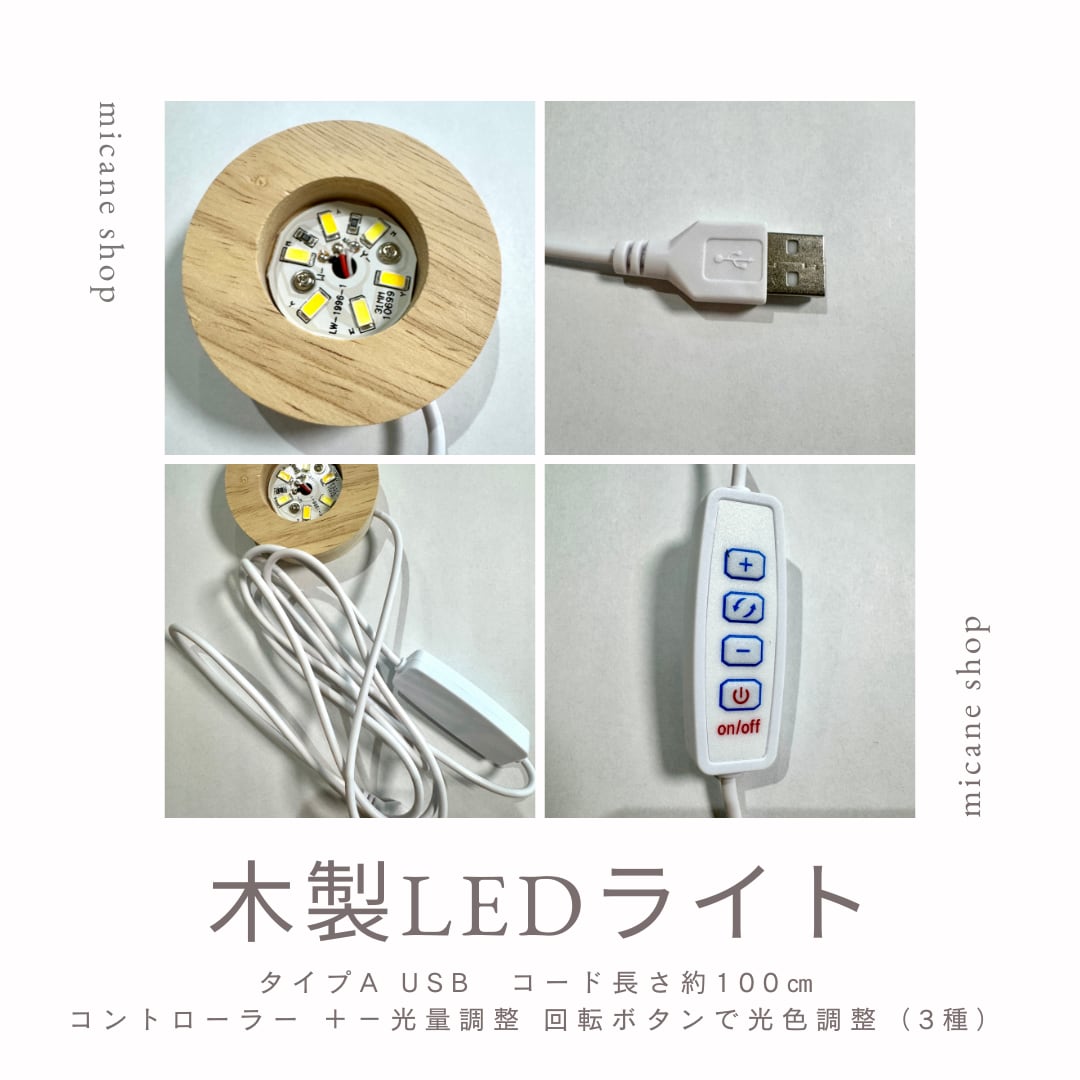 ※木製LEDライトはUSBケーブルは付属しますが、コンセント用ACアダプター(USB電源プラグ)は付属しておりません。