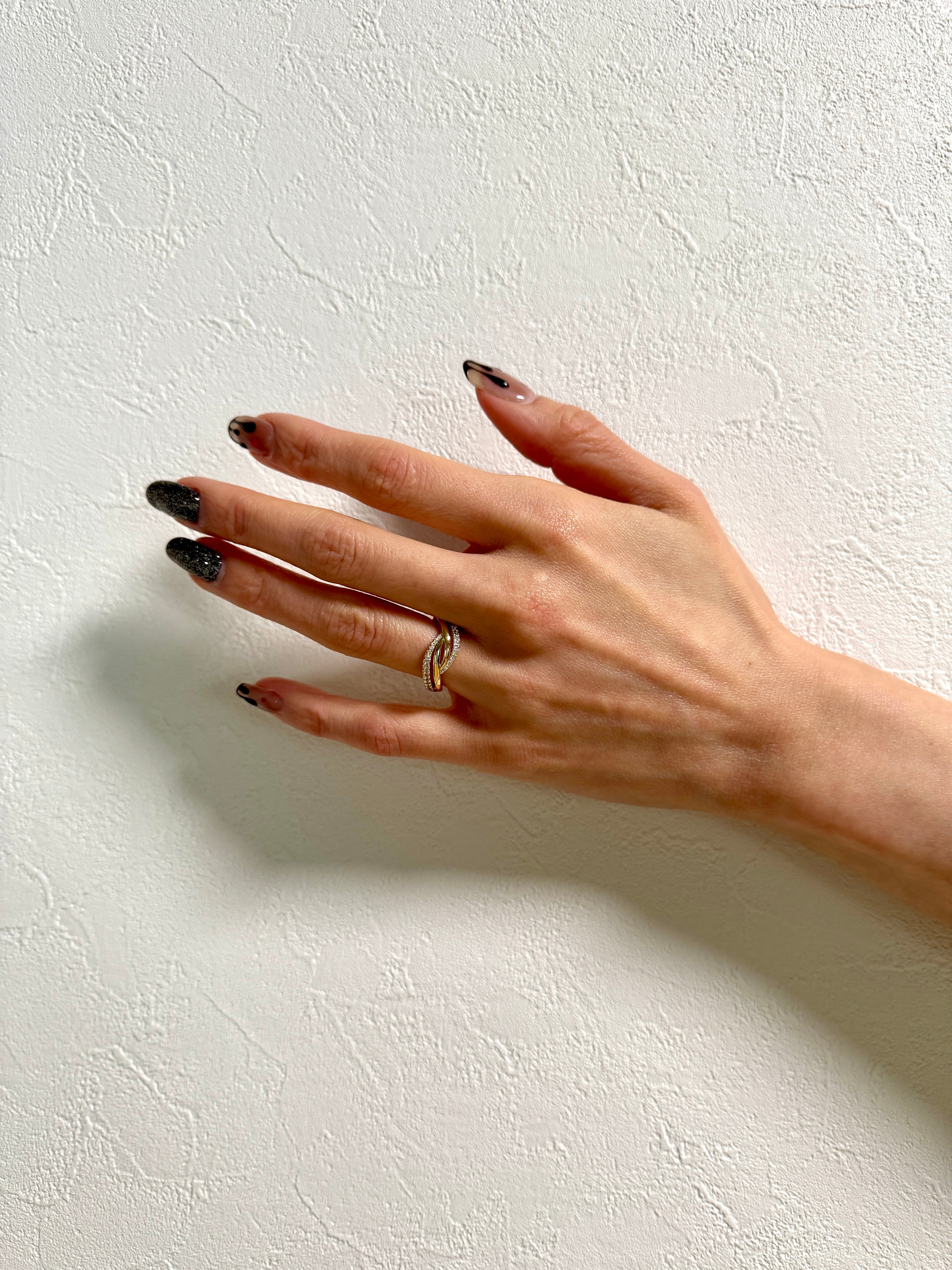 Lumière Knot Ring(ルミエールノットリング)は、繊細なツイストラインが重なり合い、まるで運命が交差して結び直されるようなデザインのリングです。