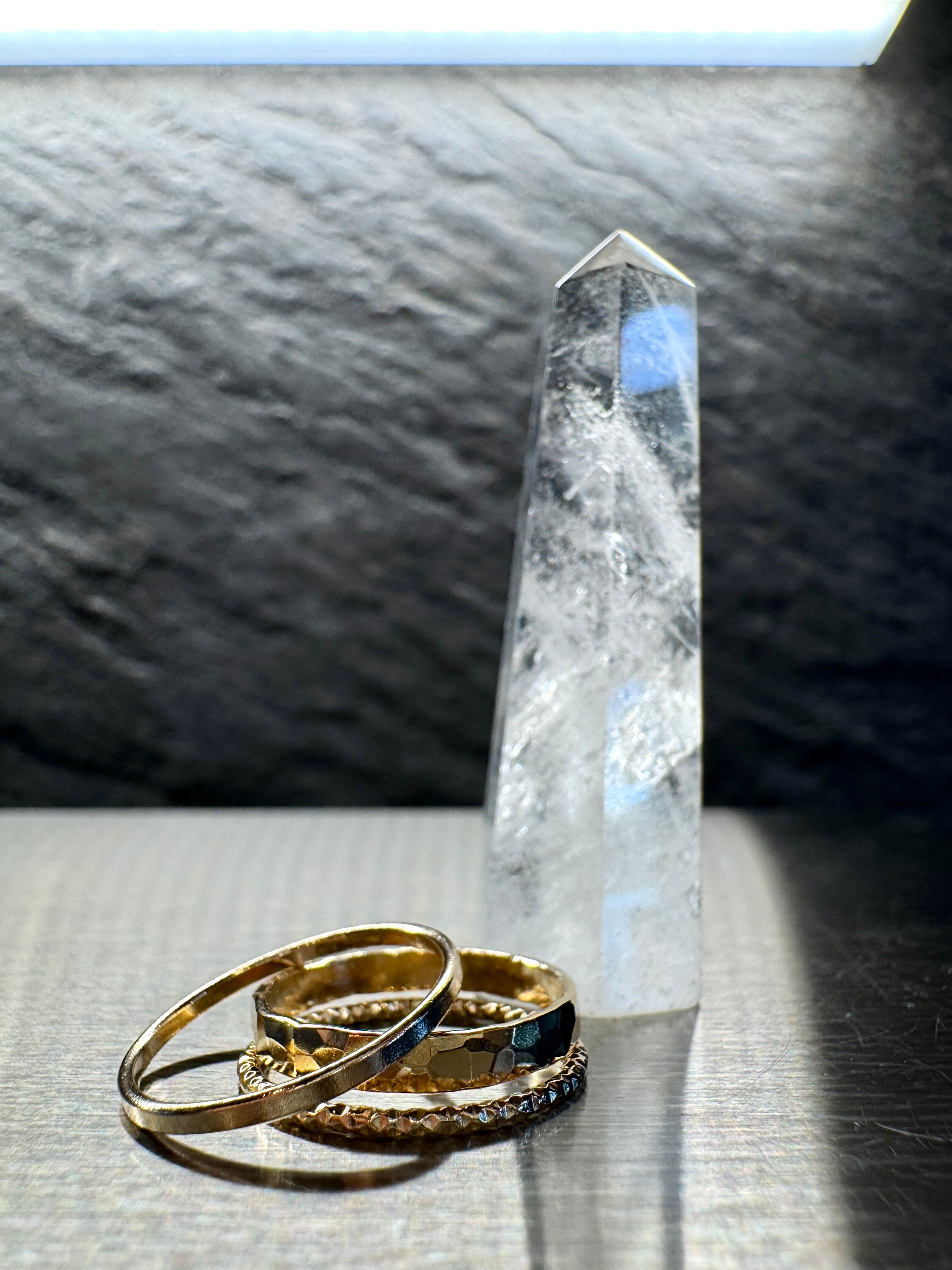 夜、リングを外した際に付属の水晶ポイントの横に置いてください。