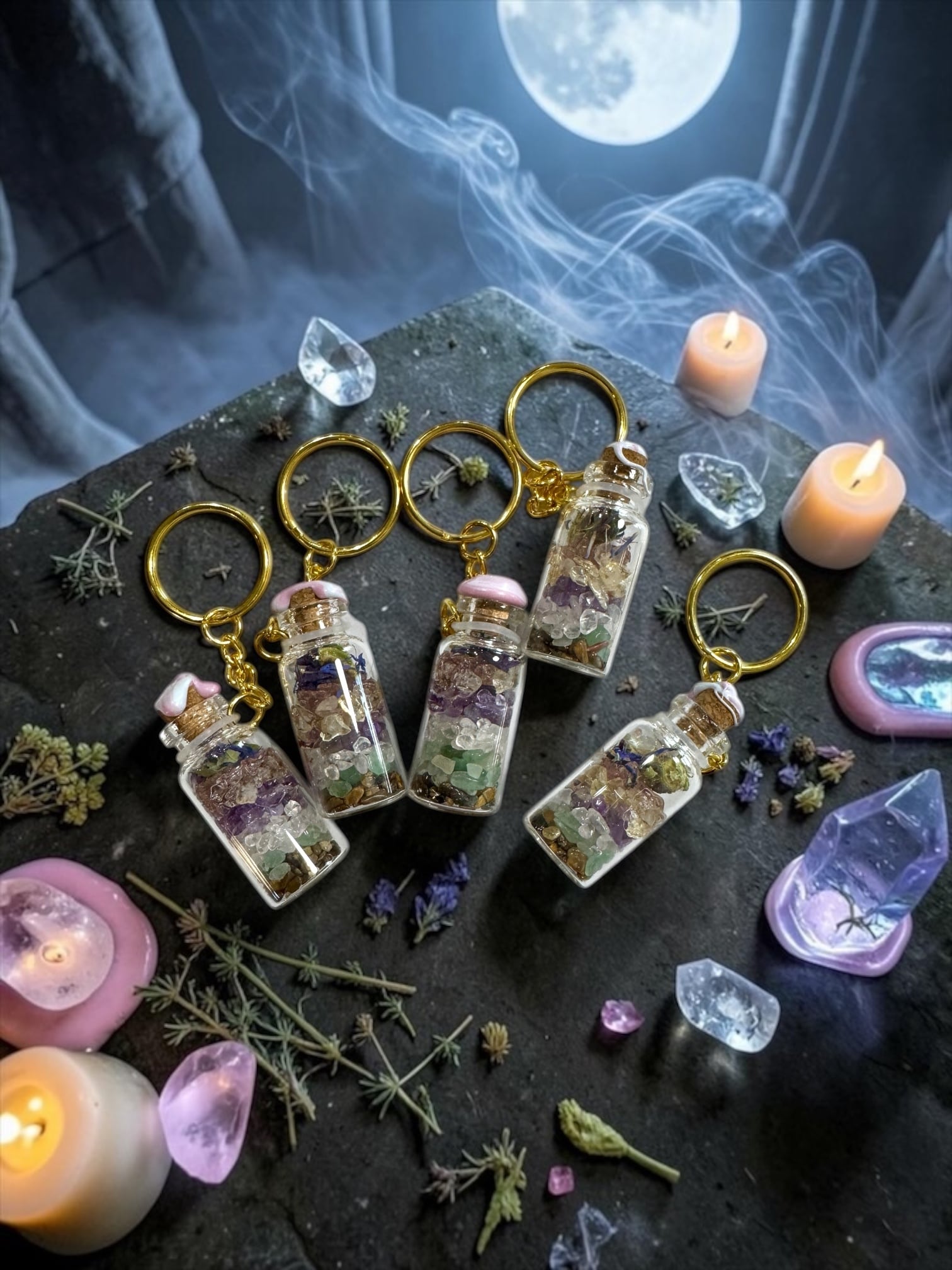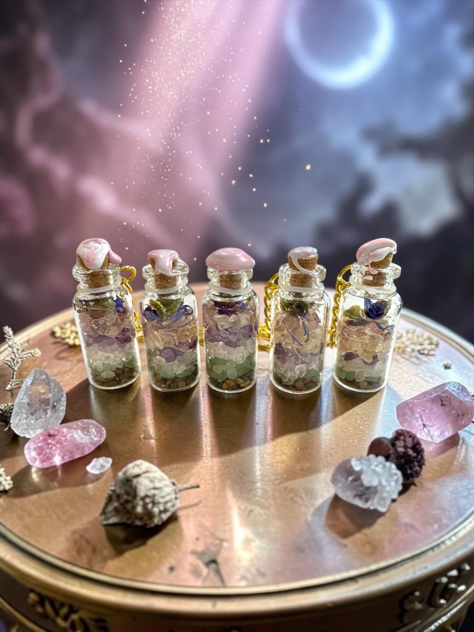古くからヨーロッパでは、石や植物、香草の力を小瓶に宿し、恋愛・豊かさ・守護・願望成就を祈る“魔女の小瓶”が作られてきました。